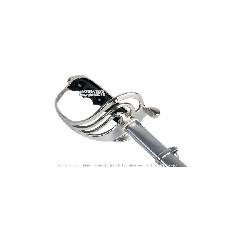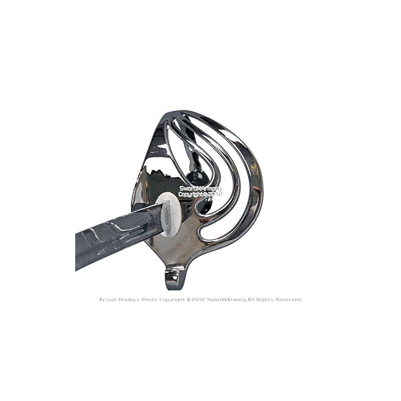 - Guard: The guard of the sword is full wrap design constructed from 440 Stainless Steel. The pommel of the sword ends with a tang button. Handle: The handle of sword is black with grips. The back of the handle is the steel from the guard.