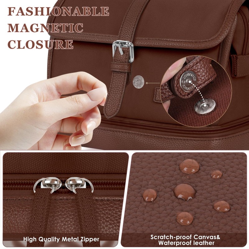 - ✅【Convenient flip cover design】: The stylishly retro flip cover design of our cosmetic travel bag is equipped with a magnetic snap closure, ensuring easy and secure access to your cosmetics while on the go.