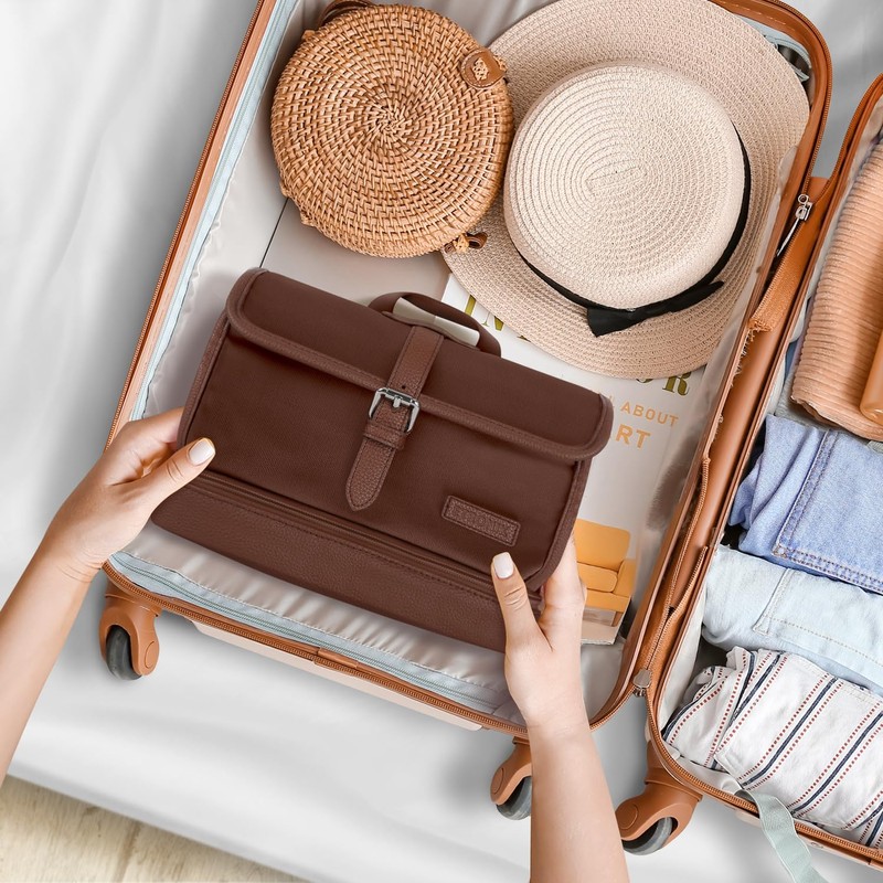 - ✅【Premium quality materials】: Made with canvas and high-quality leather, our cosmetic bag is lightweight, yet sturdy enough to protect your precious cosmetics from damage during travel.