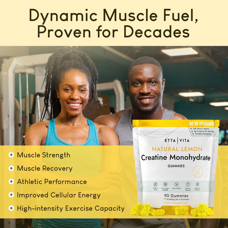 • [Efficient Muscle Fuel] Fuel your workouts like never before. Packed with potent creatine monohydrate, Etta Vita's creatine gummies help in promoting lean muscle growth, elevating athletic performance, improving high-intensity exercise capacity, enhancing muscle strength, and muscle recovery. These are effective creatine gummies for men and women.