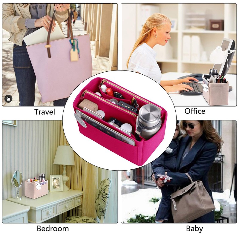 ETTP Purse Organizer, Felt Bag Organizer Insert Purse Organizer For Speedy, Neverfull, Tote, Handbag,Shaper 5 Sizes (X-Large, Rosy)