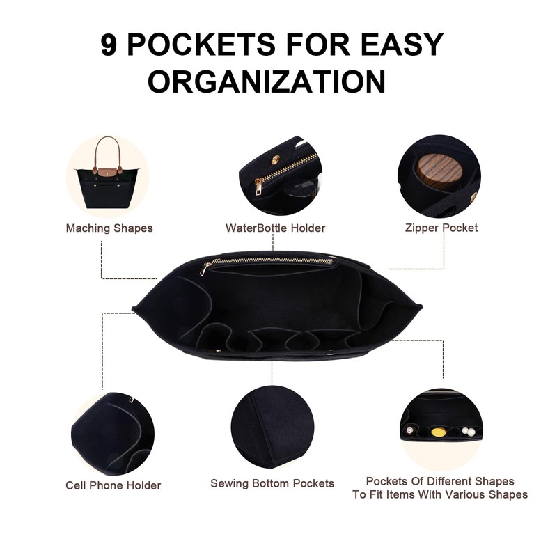 - [💗Special Design Of Shapes For Le pliage & Multi Pockets For Your Bags ] : Perfect Oval Tote Special For Your Longchamp bag ,etc. With Handle For Easy Switch and Snaps To Keep Your Belongings Safe Total 9 Roomy Pockets Including One Zipper Pouch , Water Bottle Holder ,Phone Pocket ,Diffrents Shapes Of Pockets To Fit Various sizes Of Items etc.