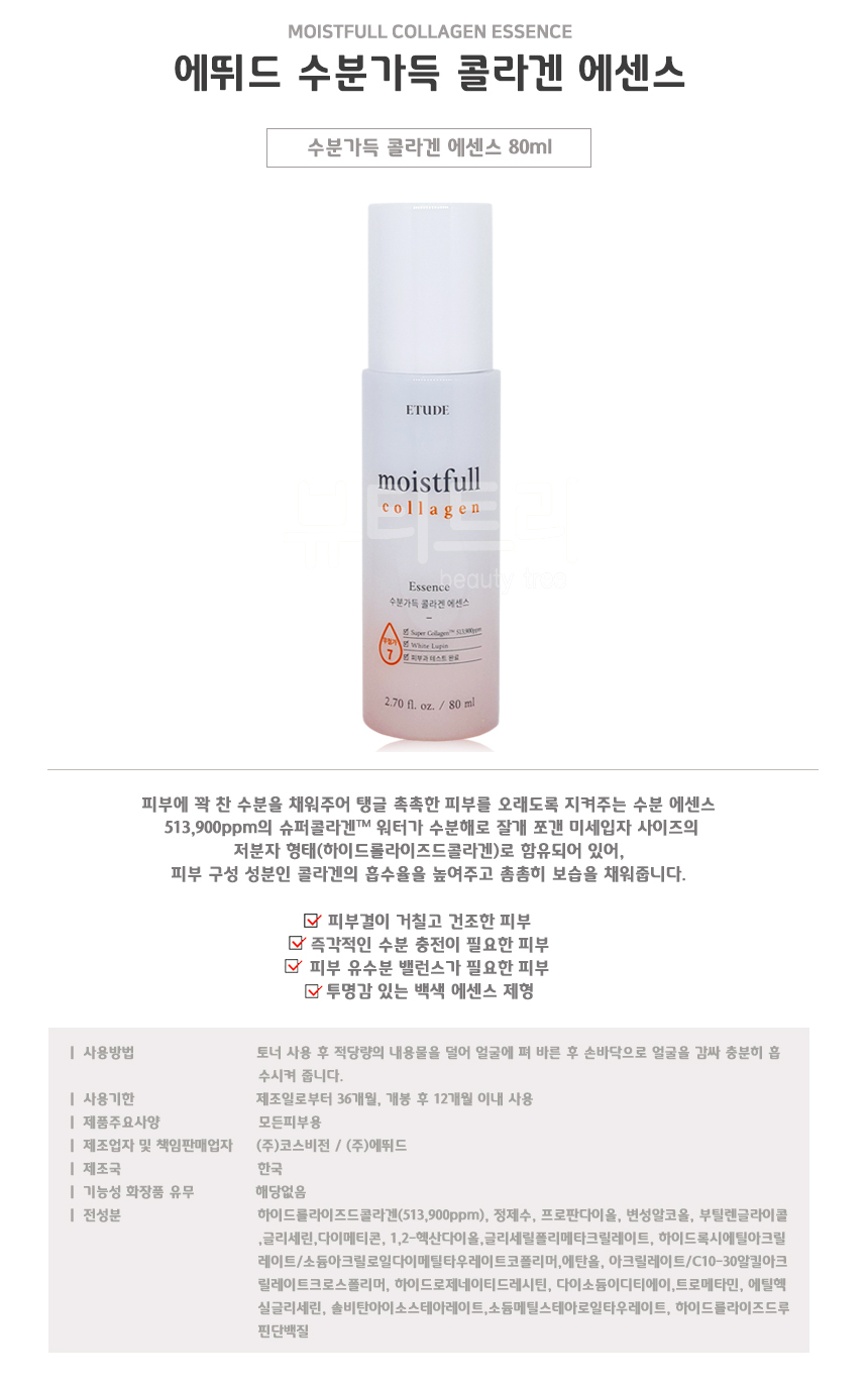 Etude House Moisture-Filled Collagen Essence 80ml / 에뛰드하우스 수분가득 콜라겐 에센스 80ml
