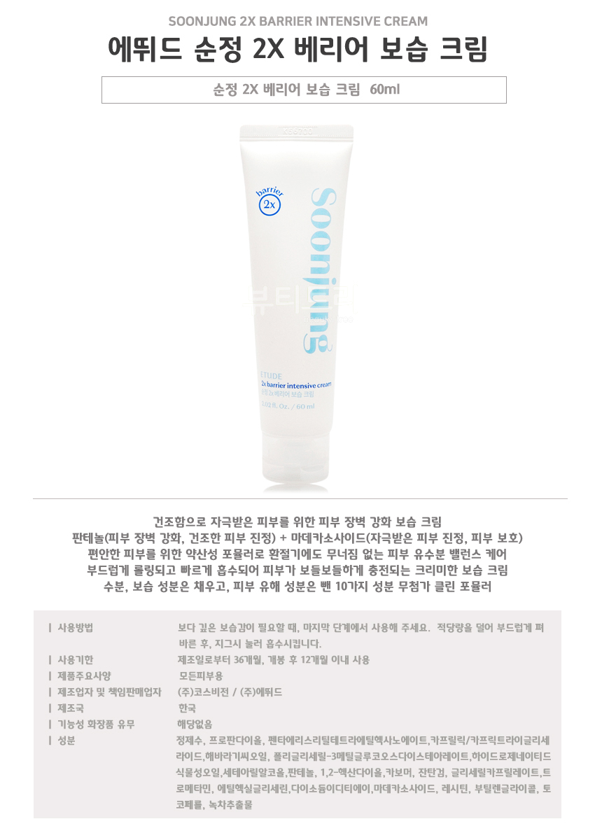 에뛰드 순정 2X 베리어 보습 크림 60ml