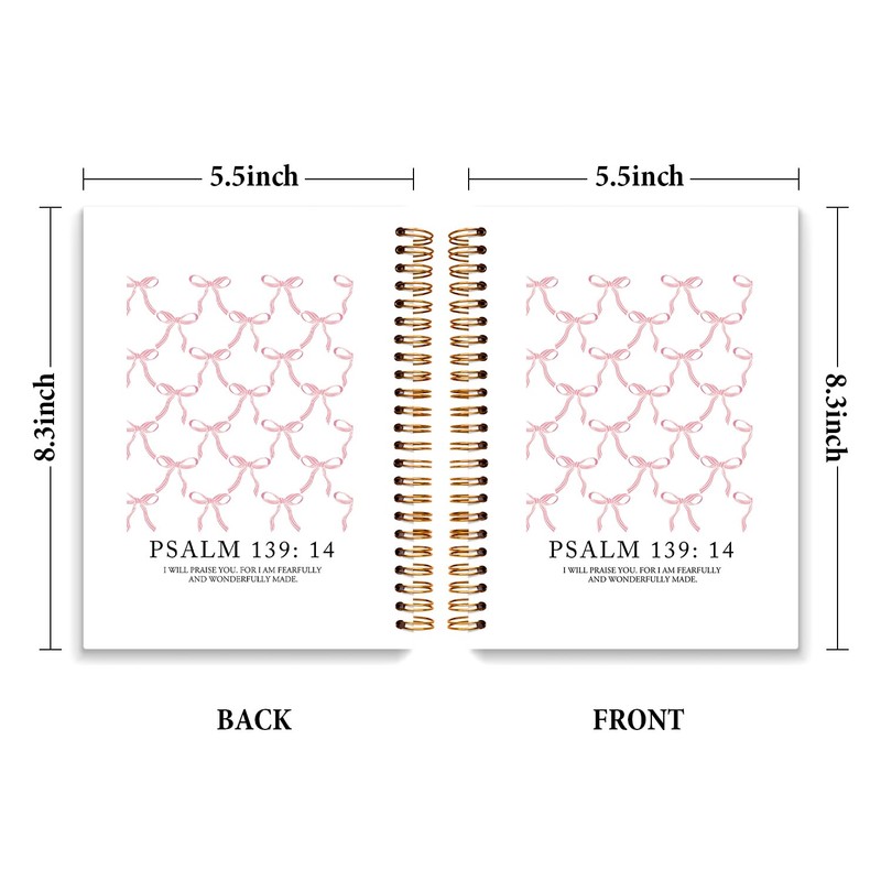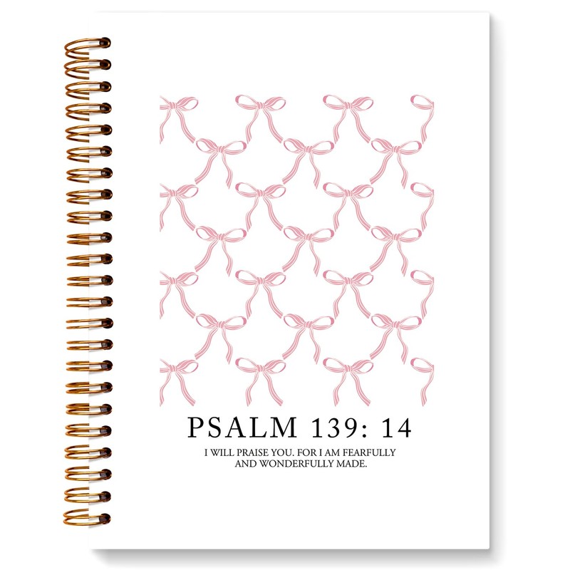 ETYZE Christian Notebook Cute Pink Bow Bible Journal for Women Teen Girls, Preppy Notebook School Bible Journaling Supplies, Church Notes Journal, Coquette Stuff Bible Study Notebooks 5.5x8.3