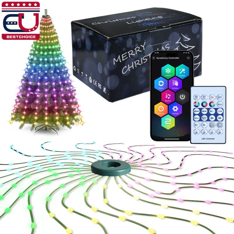 EU Bestchoice Christmas Tree Waterfall String 400LED Lights Waterproof Smart Home Decor Remote