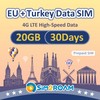 EU+Turkey SIM Card 30 Days | Data ONLY | 20GB of High-Speed 4G LTE Data | Europe Travel Sim Card | NO Registration, ID authentication Needed! |No Calls, NO SMS