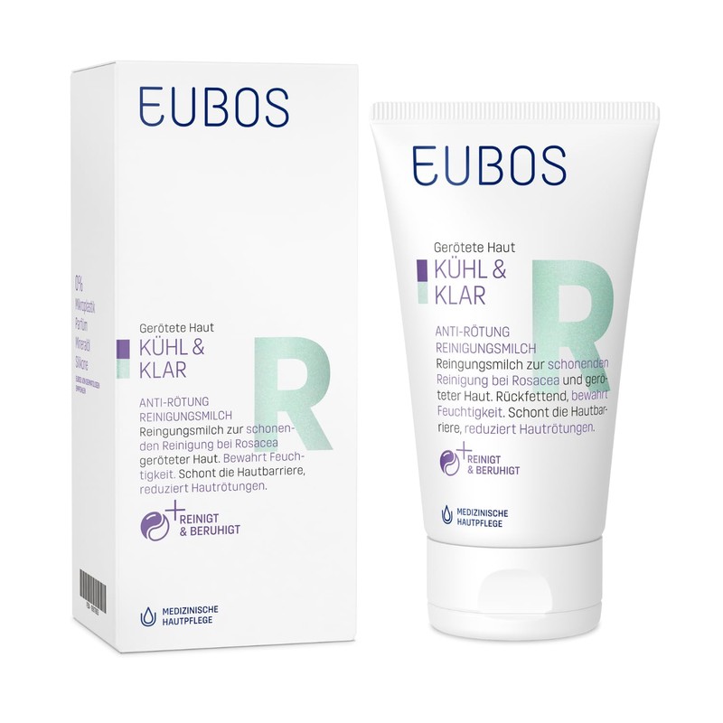 Eubos Cool and clear, anti-redness, cleansing milk, 150 ml, recommended by dermatologists, for reddened skin, for pH skin-neutral cleansing for rosacea