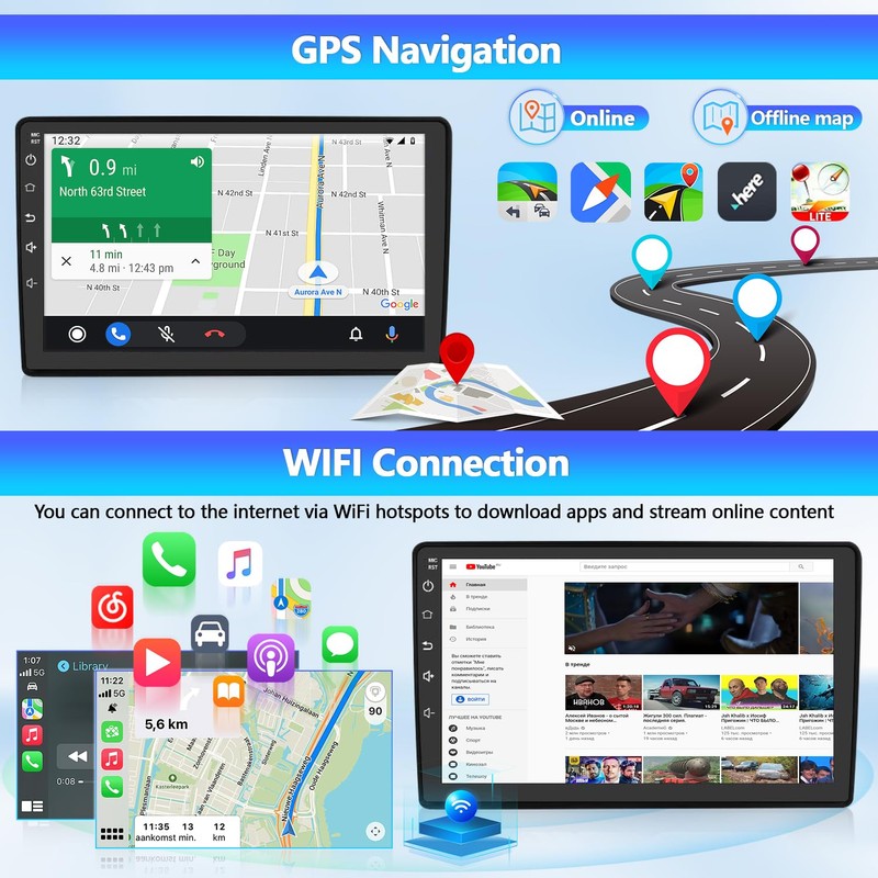 - CarPlay and Mirror Link Support: This car player supports both CarPlay and mirror link functions for Android and iOS phones, allowing you to seamlessly connect your mobile device and access its features on the car players screen.
