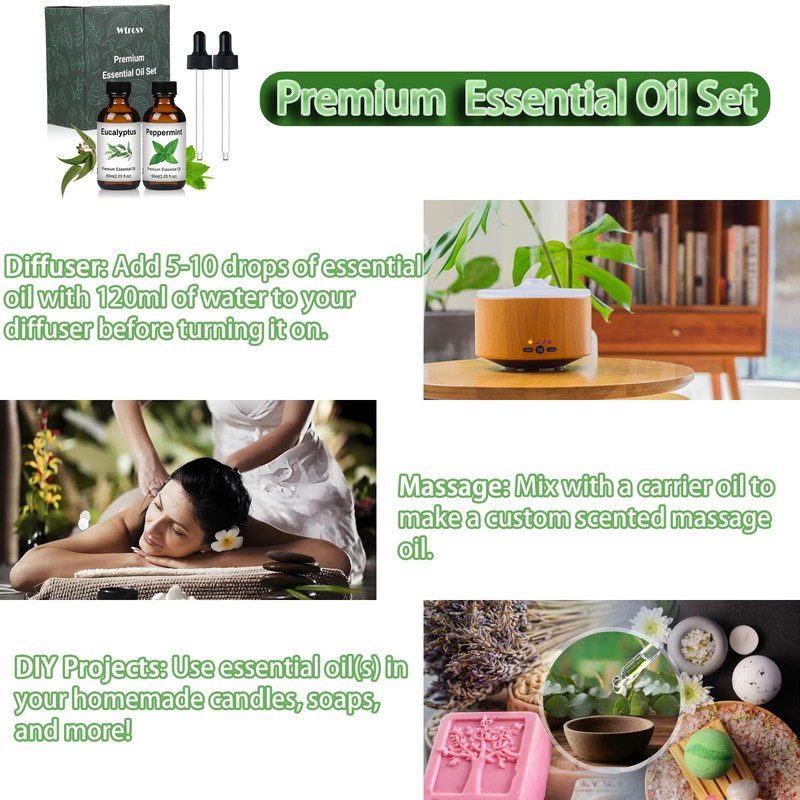 Eucalyptus Essential Oil and Peppermint Essential Oil for Diffuser,Soap Makin...