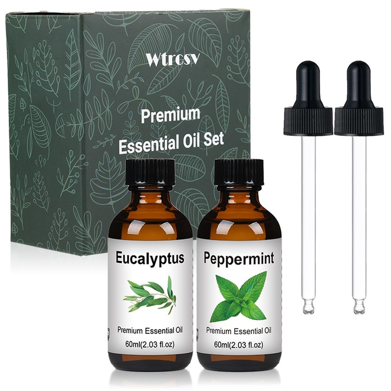 Eucalyptus Essential Oil and Peppermint Essential Oil for Diffuser,Soap Making, Candle Making Fragrance Oil Set 2 X 60ML