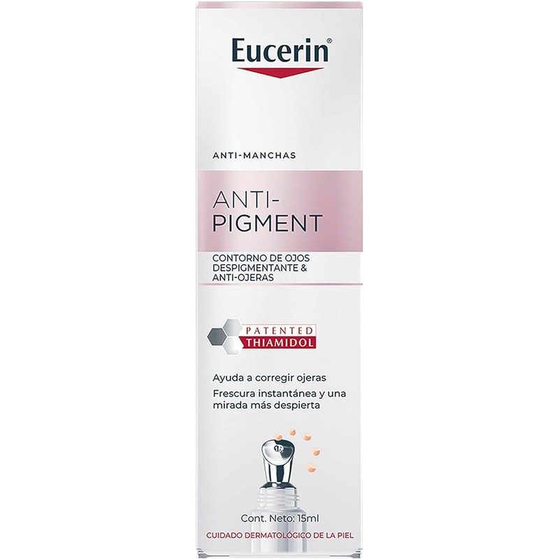 Eucerin Anti-Pigment Crema de Ojos 15ml, Anti Manchas y Anti Ojeras, Reduce las arrugas y líneas de expresión, Hidrata intensivamente, Piel Radiante y más luminosa Fórmula con Thiamidol, Licochalcona A y Ácido Hialurónico. Crema Anti-Ojeras especialmente formulada para reducir la hiperpigmentación y mejorar la luminosidad en la delicada área del contorno de los ojos. Su fórmula ligera y fresca actúa en el origen de las ojeras, proporcionando un aspecto más despierto y fresco desde la primera aplicación. -Thiamidol: Este ingrediente patentado es altamente eficaz en reducir la producción de melanina, tratando la raíz de la hiperpigmentación y ayudando a unificar el tono de la piel para una mirada más clara y radiante. -Pigmentos Reflejantes de Luz: Los pigmentos iluminadores presentes en la fórmula ayudan a reflejar la luz en el contorno de los ojos, dando un efecto luminoso inmediato y un aspecto más descansado y fresco. -Ácido Hialurónico: Con su poderosa capacidad hidratante, el ácido hialurónico ayuda a reducir las bolsas bajo los ojos y a suavizar las líneas finas, dejando la piel más hidratada y suave. -Oligopéptidos: Estos ingredientes estimulan la producción de colágeno, mejorando la estructura dérmica de la piel y ayudando a reafirmar la zona del contorno de los ojos para un look más juvenil y firme. Tratamiento ideal para iluminar el contorno de los ojos, suavizar las líneas de expresión y reducir la hiperpigmentación. Resultados visibles después de 2 semanas de uso regular.