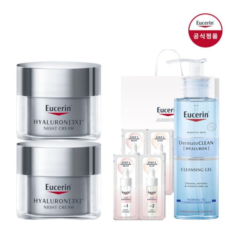 Eucerin Hyaluronic 3X Night Cream 50ml x 2 Freebies Dermatoclean Refreshing Cleansing Gel / 유세린 하이알루론 3X 나이트크림 50ml 2개 증정더머토클린 리프레싱 클렌징 젤