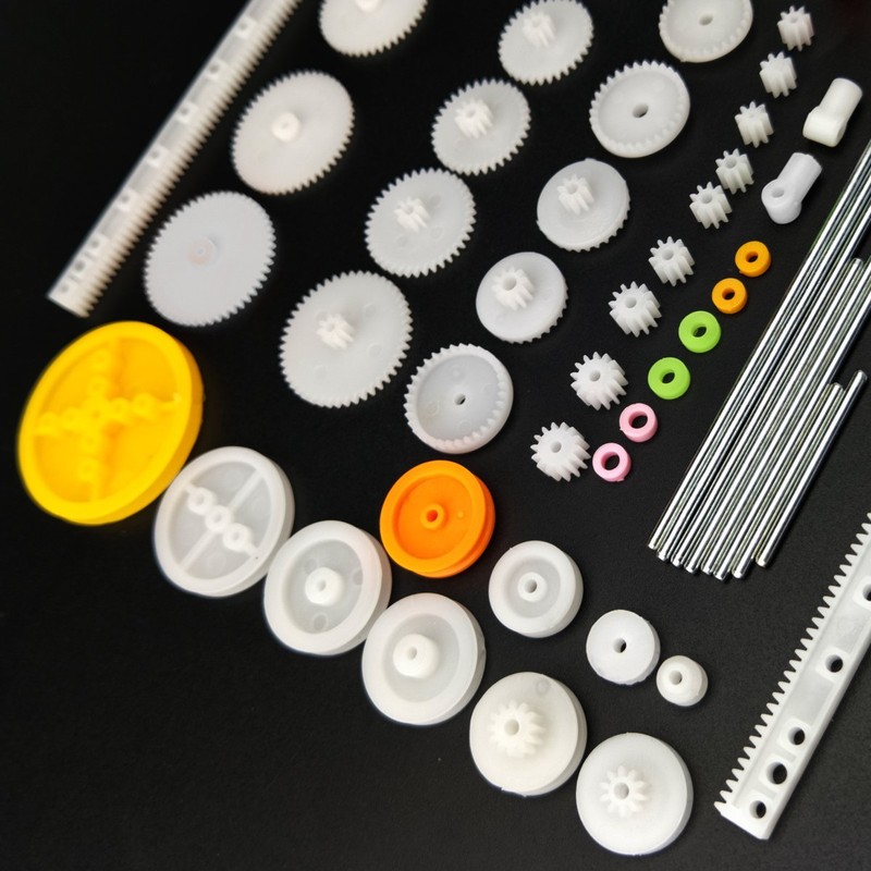 • Package including:6pcs DC motor,6pcs battery holder,6pcs rocker switch,6pcs motor mounting Bracket,12pcs 9.8" Electronic wire,84pcs plastic gears(Random Color) ,4 pcs 4 vanes propeller,2pcs 3 vanes propeller and 40cmΦ3 Heat shrink tube