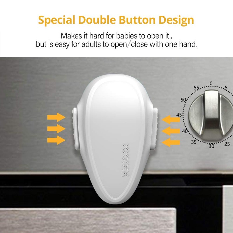- Special REVOLVING design & Double Button Design---EUDEMON baby safety oven front door lock can free revolving for 180°,a simple "locking & unlocking" setting for your convenience. Special double button makes it hard for babies to open but easy for adults to open/close with one hand.Push the oven lock gently can change the lock from unlocking position to the locking position.The updated oven lock's button color is the same to the lock, avoid babies curiosity to play with the locks.