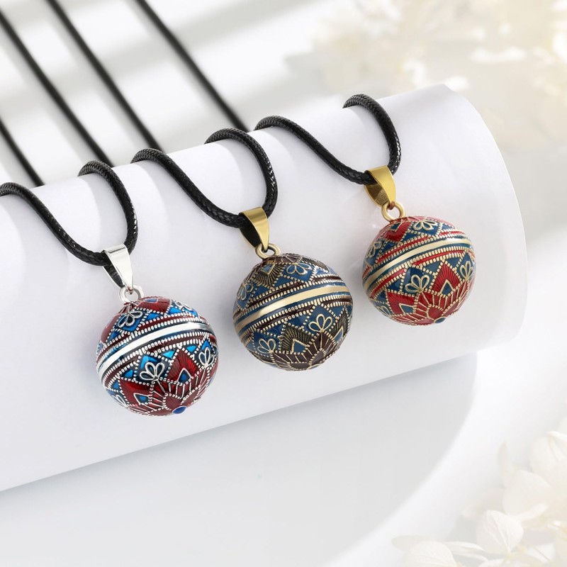 Originating from Mexico, harmony balls are antenatal training necklaces first worn by pregnant women. They can create gentle and soft wind chime while walking. Modern experimental result shows that fetus after 20 weeks can hear this angel sound and feel mom's love. So it's popular in some celebrity circle to wear Mexican ball during pregnancy.