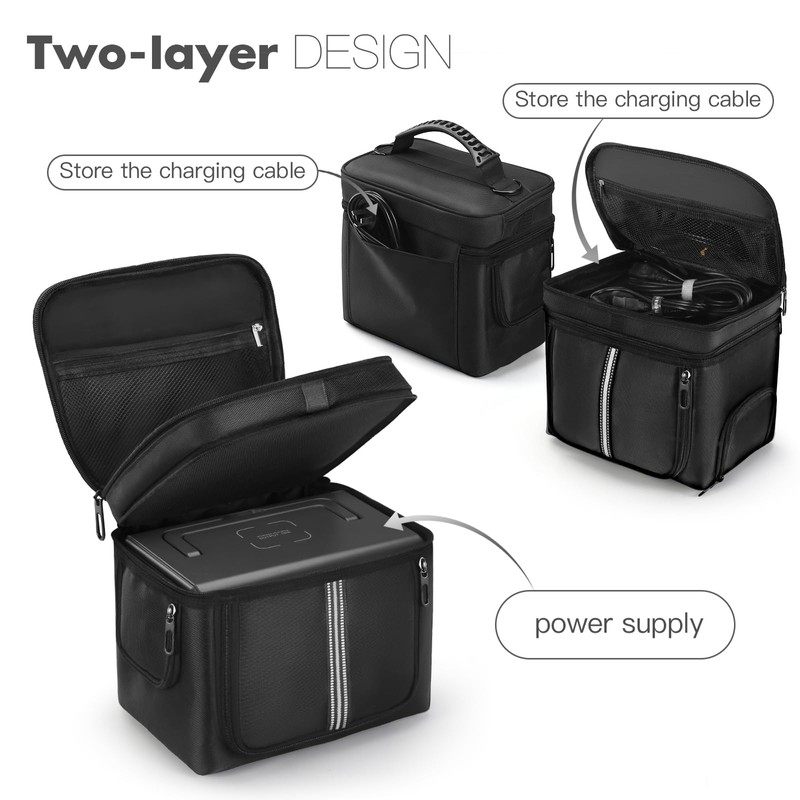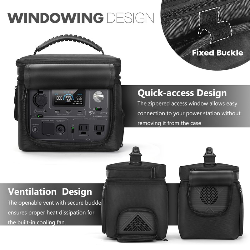 - PERFECT FIT & SMART STORAGE DESIGN Specially designed compatible with solar generator EB3A 268Wh. This carrying case features two compartments to keep your solar generator and cables safe. In addition, an exterior pocket provides extra space for storing spare cables or small accessories, keeping everything neatly organized and within easy reach.