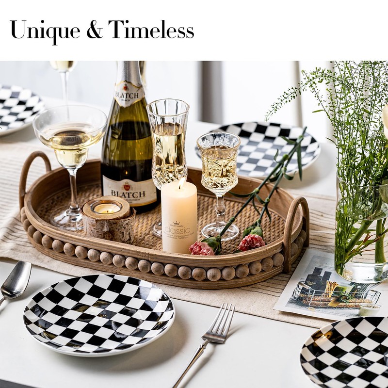 • Chic Checkered Salad Style: The 8-inch black and white checkered salad plates combine modern geometric design with functional elegance. The striking contrast of black and white grids enhances the presentation of salads, fruits, and light meals, making every dish look more appetizing and stylish