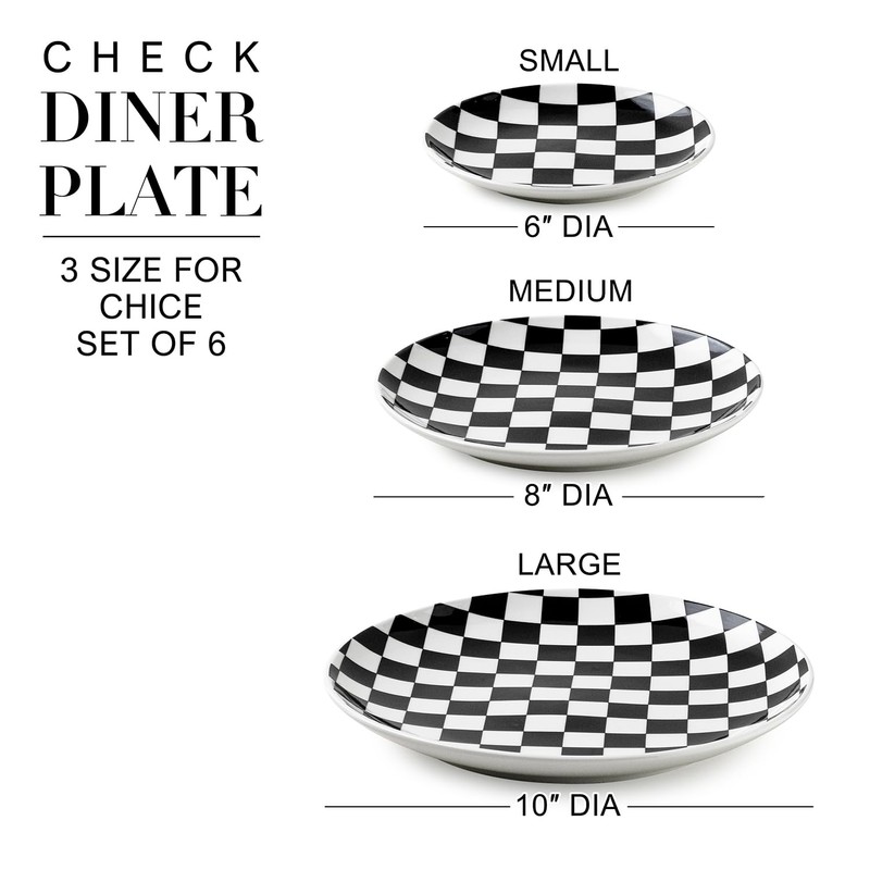 - Chic Checkered Salad Style: The 8-inch black and white checkered salad plates combine modern geometric design with functional elegance. The striking contrast of black and white grids enhances the presentation of salads, fruits, and light meals, making every dish look more appetizing and stylish
