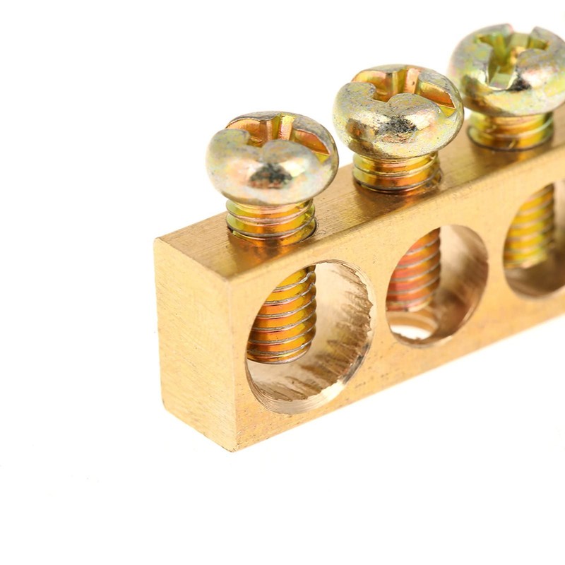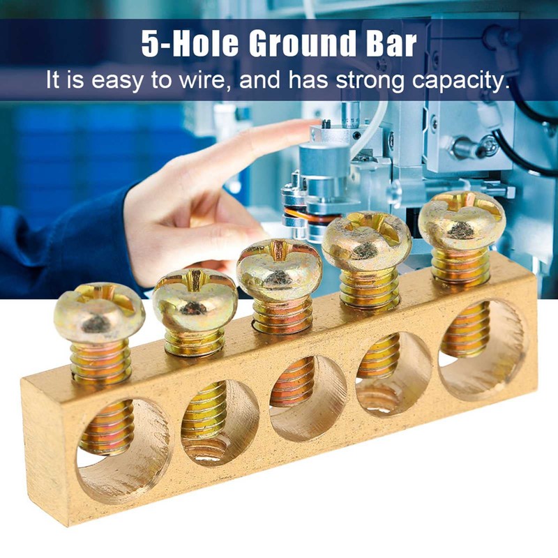 Eujgoov 10PCS Brass Ground Bars, 5-Hole, M5 Screw Terminal Block Connector, Single Row, Neutral Bar, Size 1.8x0.7x0.3in