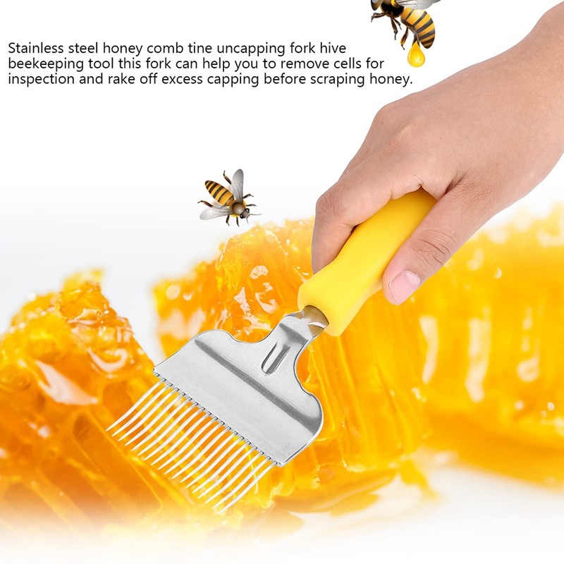 - Honeycomb Tine Discovery Fork Stainless Steel Beehive Beekeeping Tool This fork can help you remove cells for inspection and rake off excess caps before scraping off the honey.