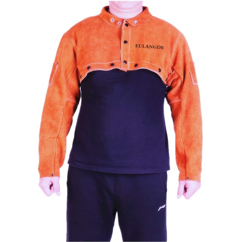EULANGDE Premium Heat Resistant Leather Welding Cape Sleeve,Adjustable Cuffs, Adjustable Collar for Men and Women (Brown, X-Large)