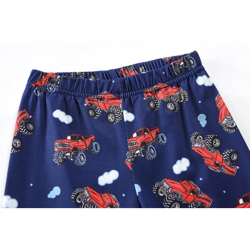 - 【Cool Monster Truck】This pyjamas set for 1-7 years old boys is a hit with its monster truck design. Red monster trucks and cloud prints on the navy - blue fabric bring a fun, adventurous vibe, perfect for little truck enthusiasts to enjoy bedtime or lounging.