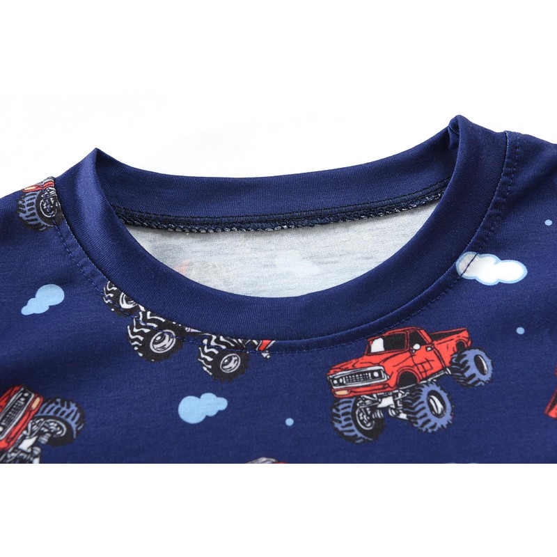 - 【Cool Monster Truck】This pyjamas set for 1-7 years old boys is a hit with its monster truck design. Red monster trucks and cloud prints on the navy - blue fabric bring a fun, adventurous vibe, perfect for little truck enthusiasts to enjoy bedtime or lounging.