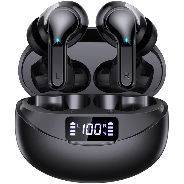 - 35H Playtime & LED Display Case --- Earbuds come with 400mAh charging case,the case have a LED digital display that not only shows the battery capacity of the charging case but also can easily let you know the charging status of your bluetooth headphones. Wireless earphones can be offered up to about 7hrs of listening when single charged,the case can delivers 5 charge times for the ear buds.You can totally get 35hours playtime.In addition, USB-C charging port is more convinient to plug.