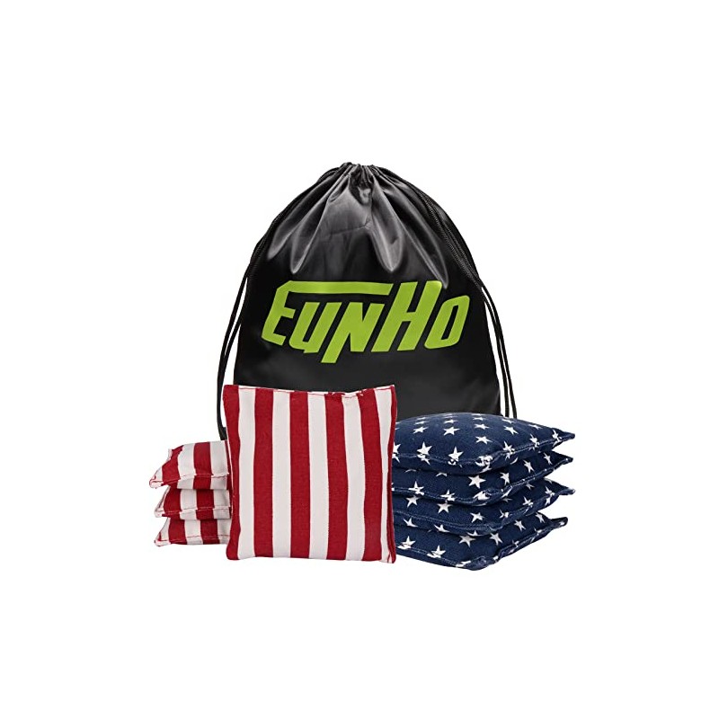 - ✌【EXTRA DURABLE】 Tried-and-true EUNHO cornhole bags are made of heavy-duty duck cloth that can take a beating. Double internal seam to ensure long-lasting cornhole gameplay without breaking or tearing. Take EUNHO bags, Spend a good time for cornhole toss game with your family or friends. Also it's a great gift with color box package.