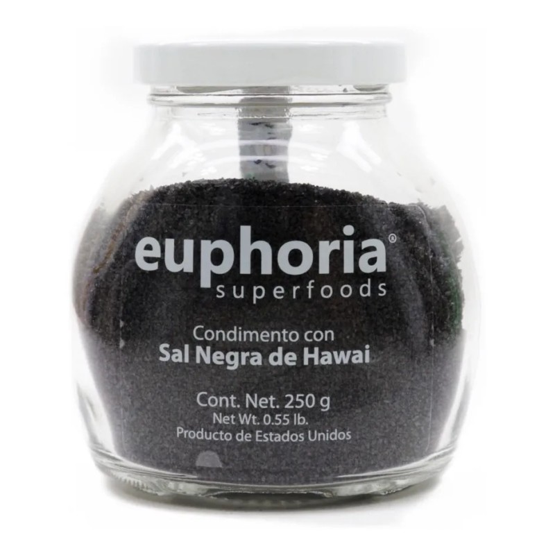 ¡Disfruta de un sabor único y exótico con la sal negra natural de Hawái Euphoria Superfoods! 🌴🌊 Esta sal de 250g es 100% natural, rica en minerales y con un sabor profundo y auténtico, proveniente de las aguas volcánicas de Hawái. 🌋💧