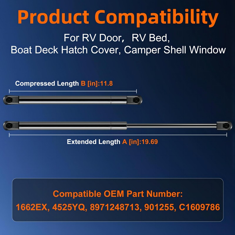 - 【Directly Replacement】Replace your RV bed with lightweight mattress, truck cap canopy topper camper shell, boat hatch deck engine cover, trailer/rv basement storrage outside kitchen door with Euplokeer gas strut 20in.