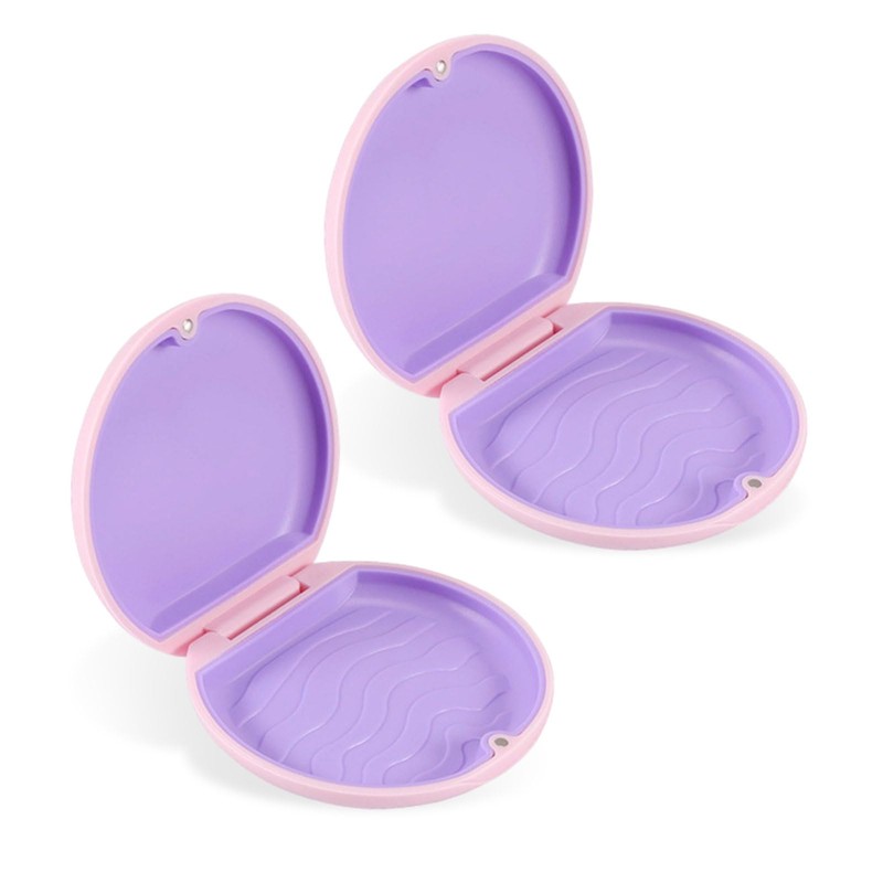 EUPSIIU 2 pieces braces box, retainer case, denture box, mouth guard case, dental prosthesis container, teeth aligner case, brace box, denture box for braces or dentures storage (pink)