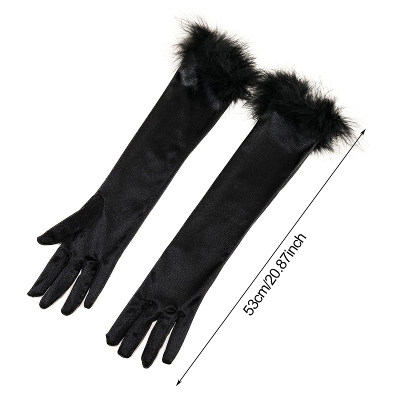 - COMFORTABLE GLOVES The long evening opera gloves are made of high quality satin, the cuffs of the gloves are also designed for fur. Very easy to put on, makes you feel comfortable.