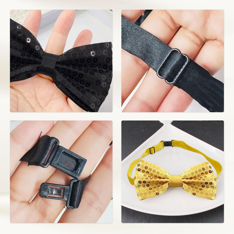 - Sequin Bow: unique glitter powder sticks to the bow tie surface, the metallic sequin detail effect is eye-catching. With our bow tie for men, you will look elegant and up to date on any occasion and ensure you always look your best!