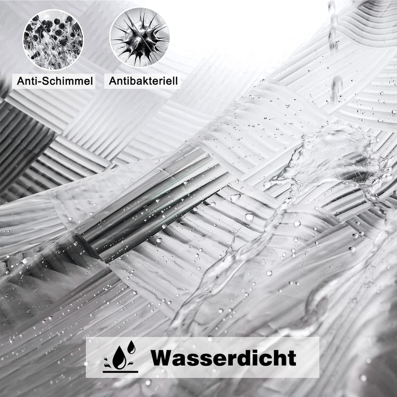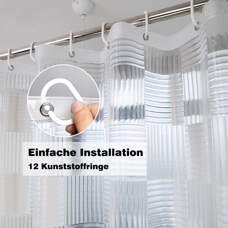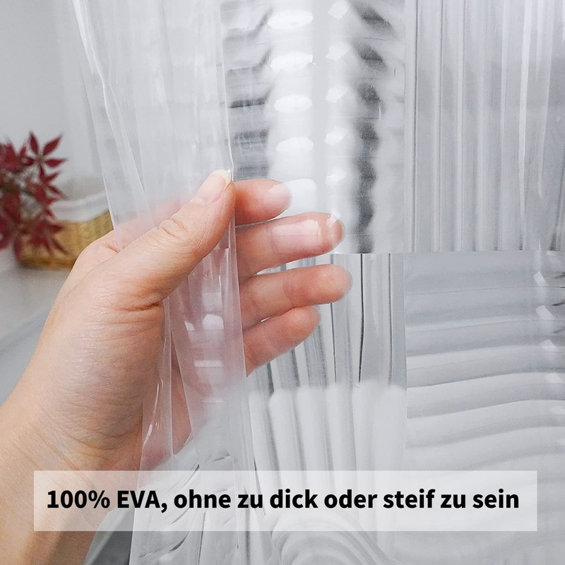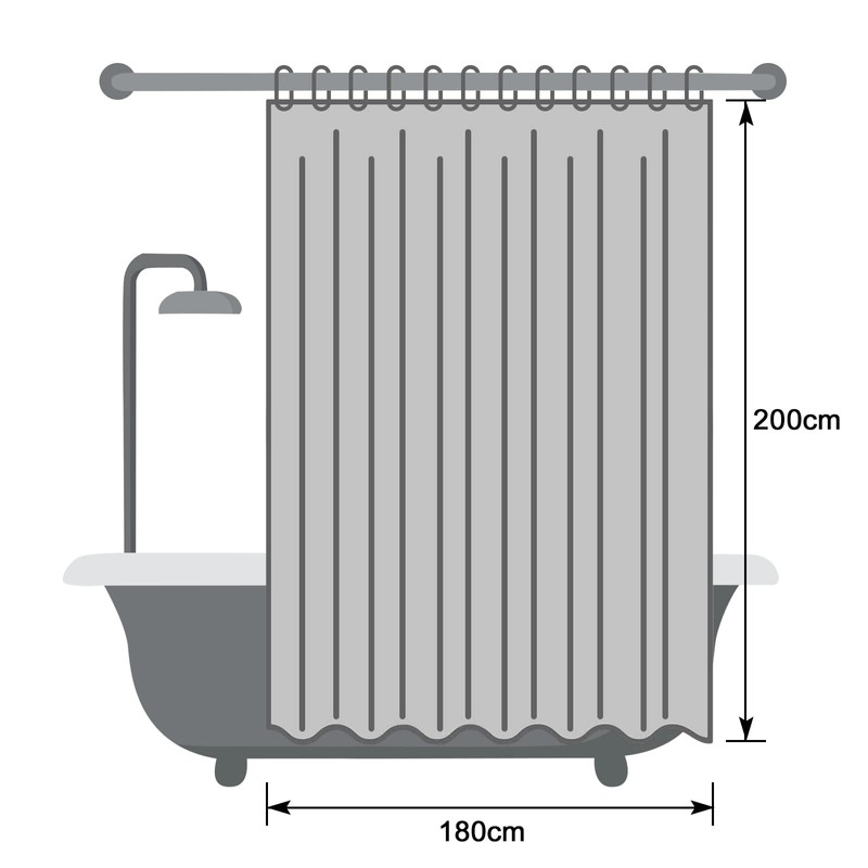 - Size and material: 180 cm wide, 200 cm high with 12 metal eyelets. The shower curtain is made of 100% EVA material and is PVC and BPA free. High-quality EVA material provides anti-mould and anti-bacterial effect.