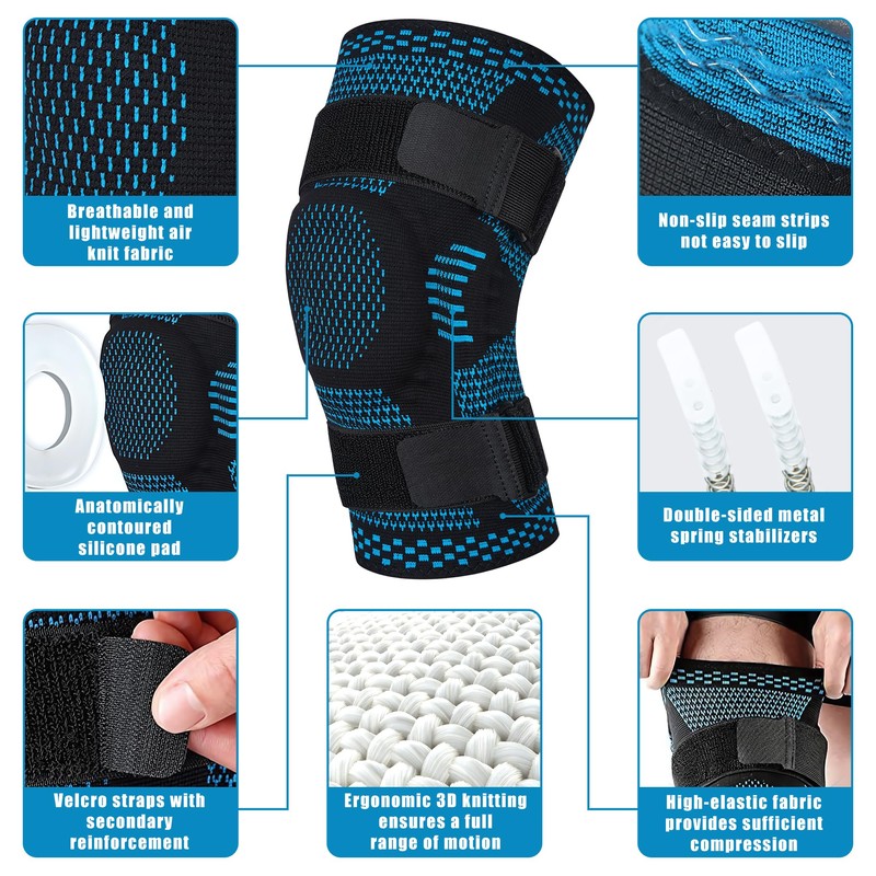 Eurekawa Knee Brace with Non Slip Seam Strip – Breathable Air Knit & High Elastic Fabric, Ergonomic 3D Knitting, Adjustable Straps – Compression Support for Sports, Exercise, and Active Lifestyles (Dark Gray XXL)