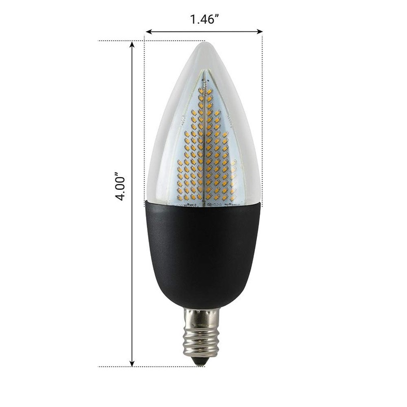 - Design - Euri Lighting's second generation flickering flame bulb is a much sleeker and smaller design in comparison to it's predecessor. Now with a blunt tip shape instead of the previous flame tip shape, the ECA9.5-2120fcb is much more compact, meaning a wider range of fixtures it can fit into. Dimensions are 1.46" Wide x 4" Tall.