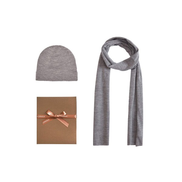 EURKEA Men's 100% Merino Wool Scarf, Beanie Hat Gift Box Set