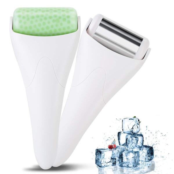 Eurobuy Ice Roller,2 Stück Roller Köpfe Ice Rolling Massagegerät, Handhold Edelstahl-Roller,Skin Care Beauty Werkzeug für Gesicht Auge Schwellungen Migräne Schmerzlinderung und kleinen Verletzungen