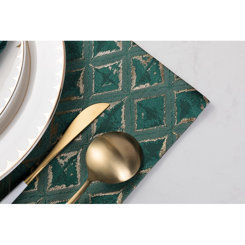 Euroca Cloth Placemats for Dining Table Woven Cotton Fabric Beautiful Design Place Mats Durable Table Mats Patio Table Mat Set (Green Pattern, Set of 6)