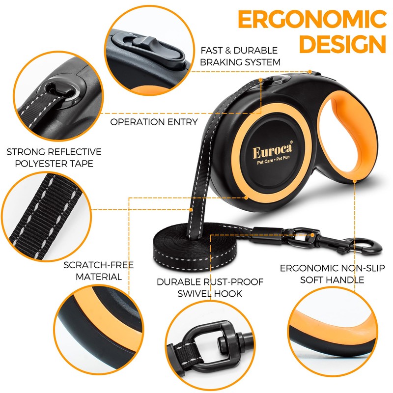 Introducing the Euroca Retractable Dog Leash, a superior quality product specially designed to provide the best experience for you and your beloved pet. This leash is perfect for dog owners who want to give their dogs the freedom to wander, yet still control their movements.