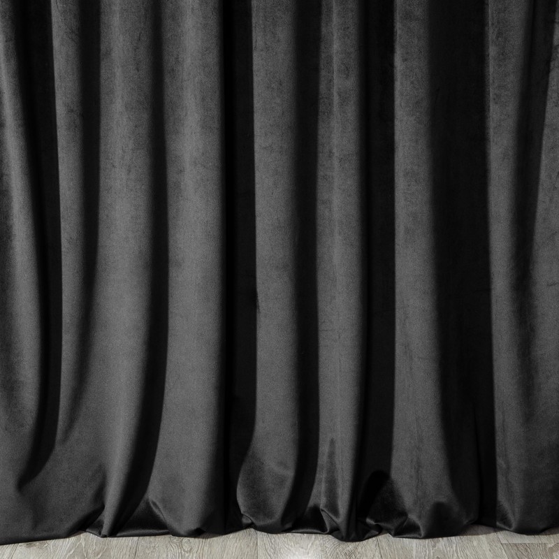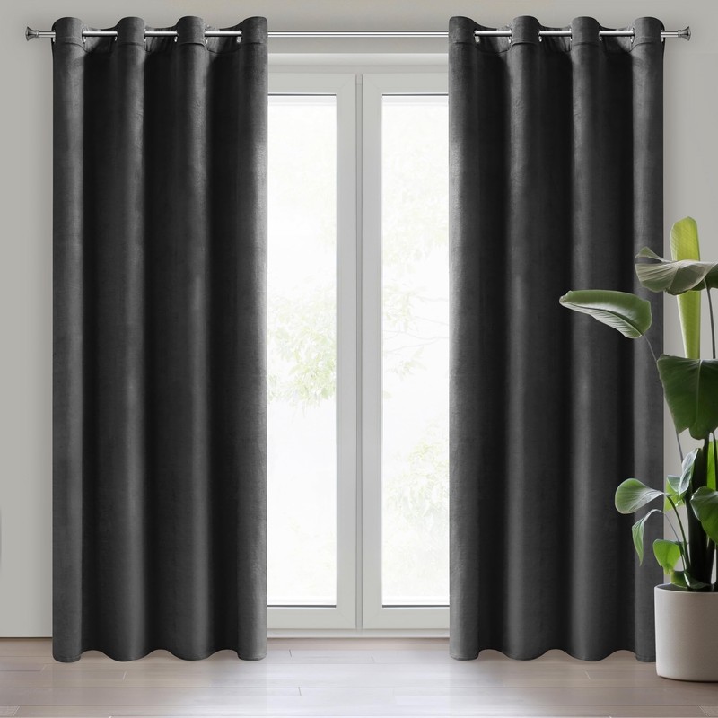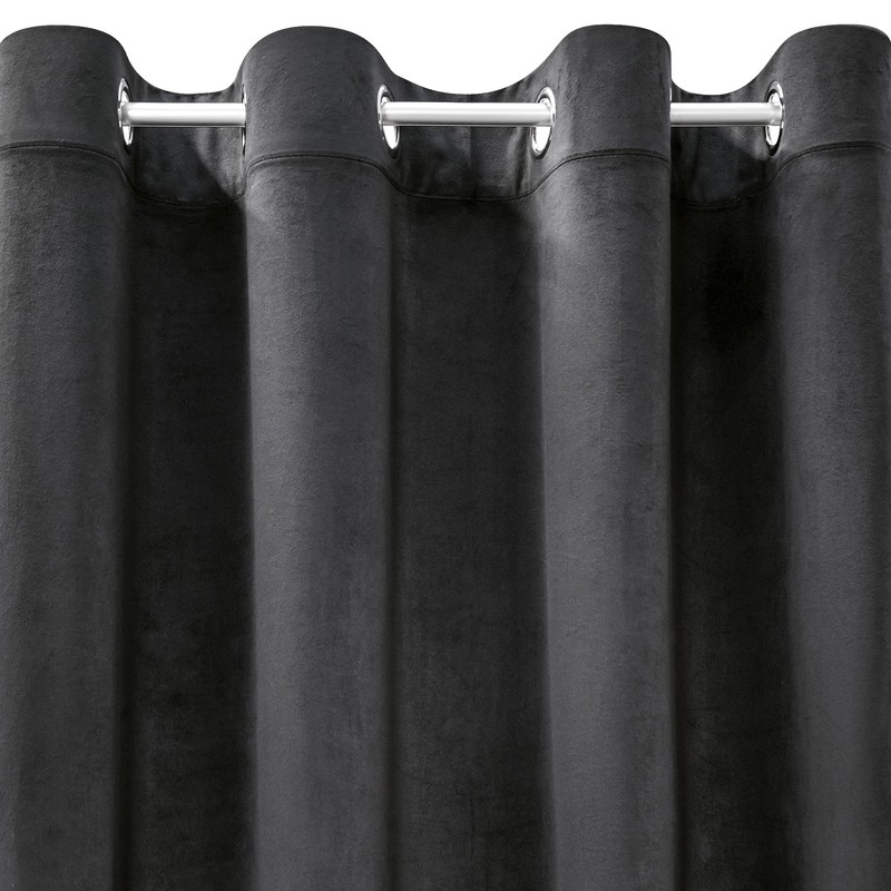 Eurofirany Melanie Velvet Curtain with Eyelets 1 Piece Soft Elegant Curtain 200 g/m² Elegant Smooth Plain Fluffy Modern Classic Living Room Bedroom 140 x 250 cm Black