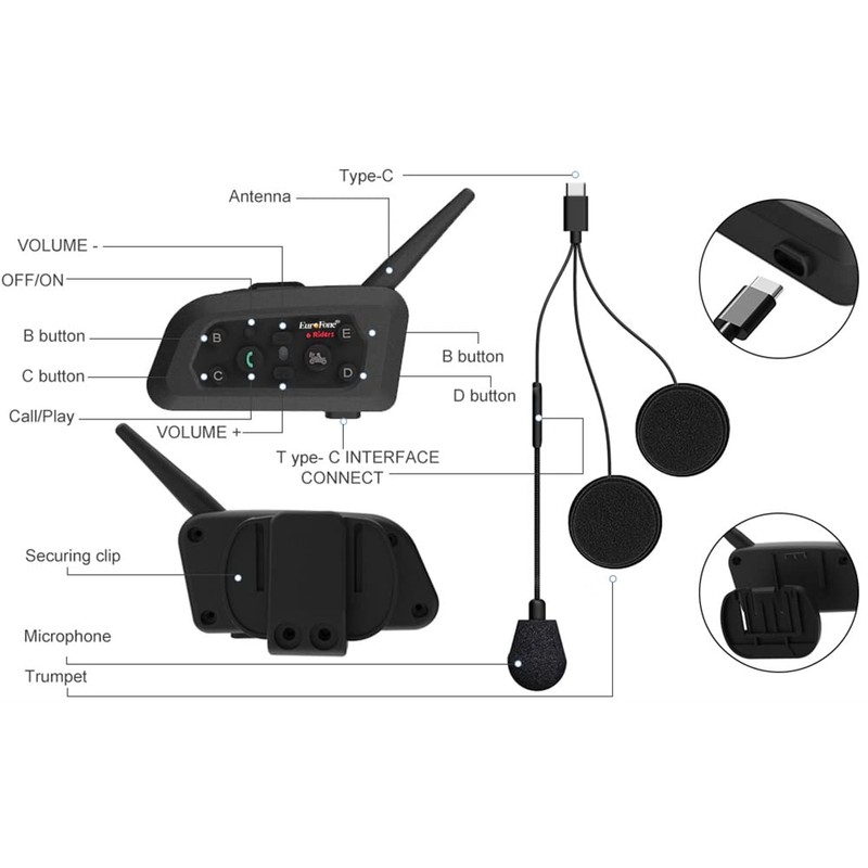 - 【Qualcomm Dual-Core Bluetooth 5.1Technology】EuroFone V6 motorcycle Bluetooth headset is equipped with cutting-edge Qualcomm Dual-Core Bluetooth 5.1 technology, ensuring high-speed transmission, low latency, and minimal distortion even in complex terrains.Our motorcycle intercom also supports the ACC audio decoding protocol, making it compatible with 99% of Bluetooth devices on the market, enabling seamless cross-brand connections