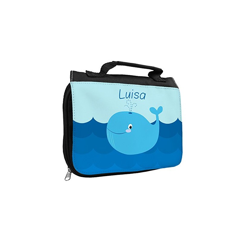 Eurofoto Handtuch + Kulturbeutel Set mit Namen Luisa und Blauwal-Motiv für Mädchen | Handtuch und Kulturbeutel Bedruckt |
