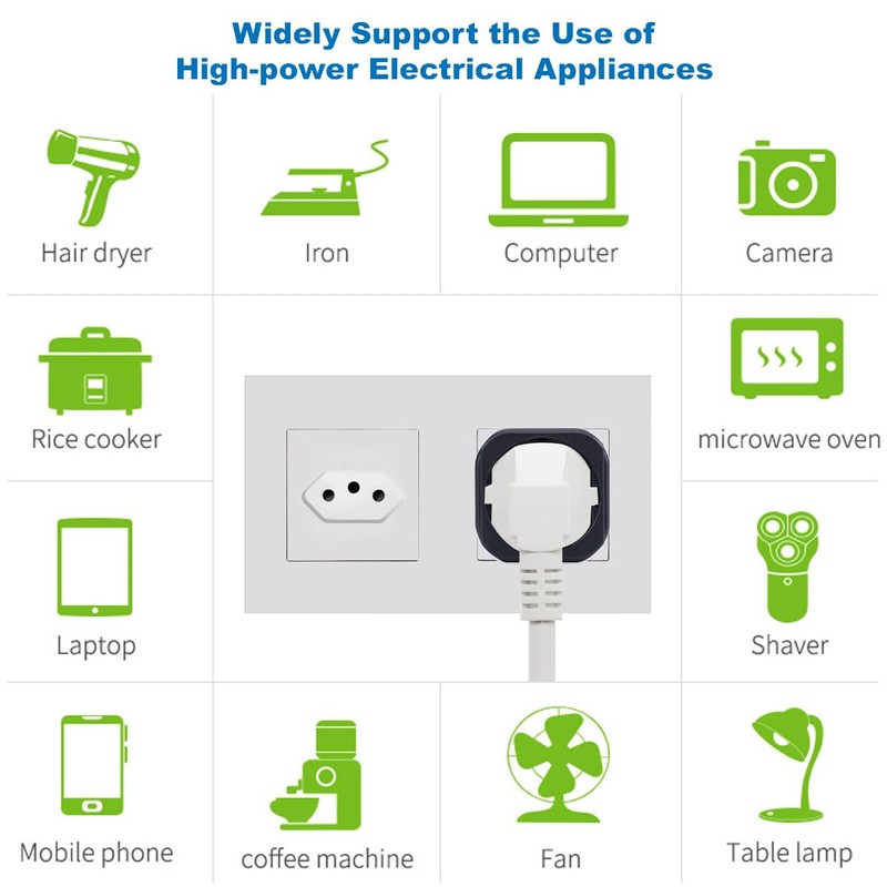 - ✔ Maximum power up to 2500 watts in Switzerland/Liechtenstein (rated power 10A, 250V), compatible with smartphones, cameras, laptops, razors, lamps, hair dryers, straighteners, curlers, toothbrush, curling iron and more, ideal for electronics from abroad or foreign friends at home.