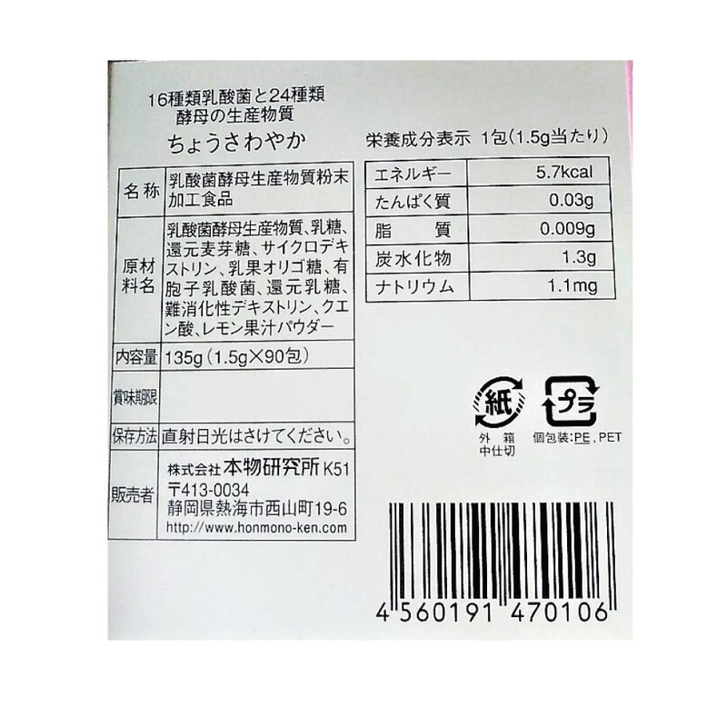 - Ingredients: Lacto production substances, lactose, yeast, breast reduction, 麦芽糖 saikurodekisutorin fruit origo reduction, Lacto are spores, sugar lactose, flame extinguishing dekisutorin, Citric Acid, Lemon Juice Powder