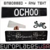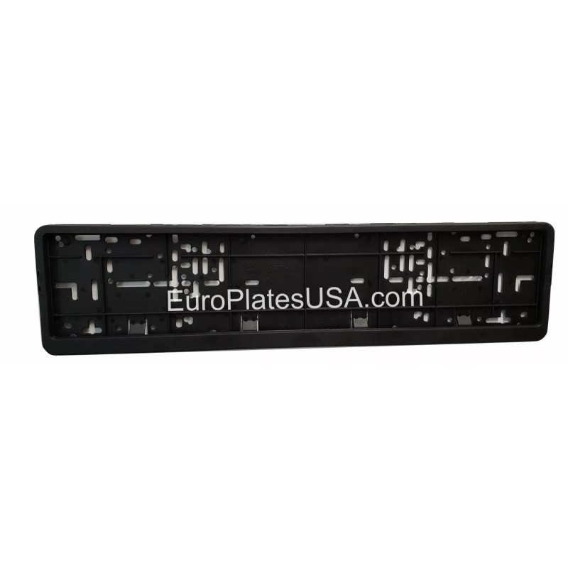 European License Plate Kit - ANY TEXT, EMBOSSED, ALL BLACK GLOSS - WHITE text