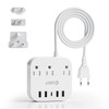 European Plug Adapter, Unidapt US to UK Europe Power Strip for EU/UK/US with USB C and 4 USB Ports, 3 AC Outlets, Wall Mountable, 5ft Extension Cord, for Travel Cruise Ship Home