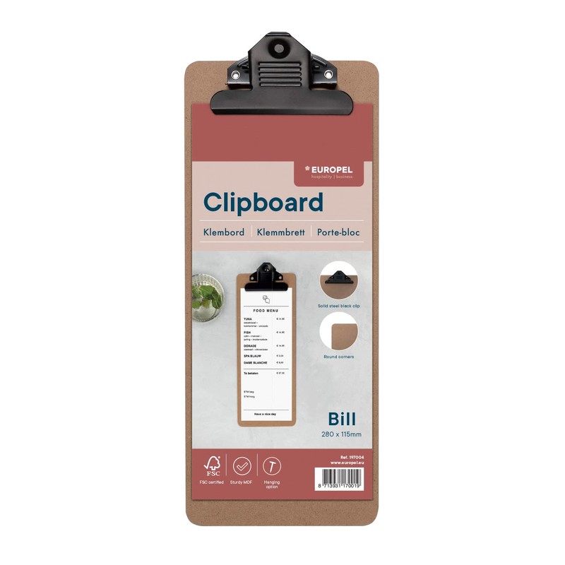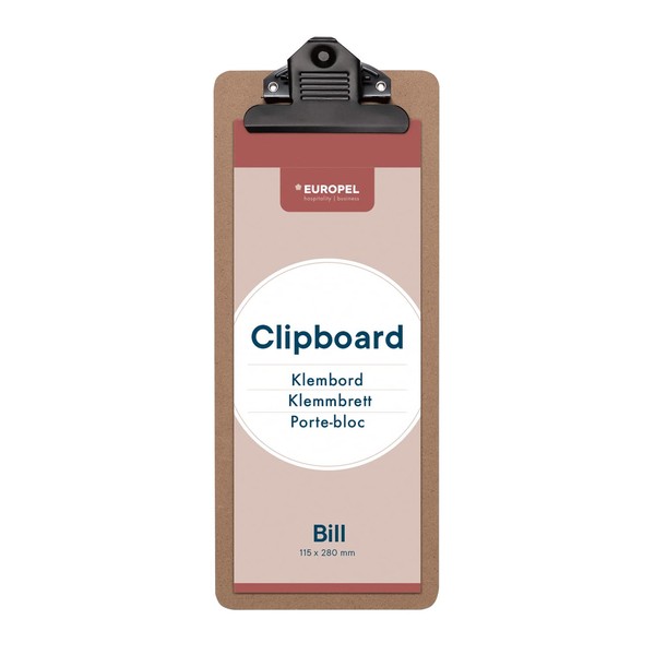 EUROPEL Wooden Clipboard Mini/Bill Size FSC Certified MDF with Black Metal Clip for Classroom, Office, Shop, Restaurant, Warehouse, 280x115x3mm
